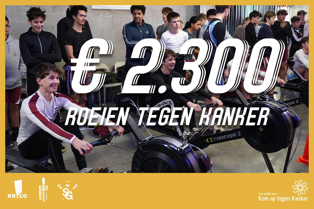 Dit bracht 2.300 euro op voor Kom op tegen Kanker. Een mooi resultaat, mede dankzij de steun van de Koninklijke Roeivereniging Sport Gent