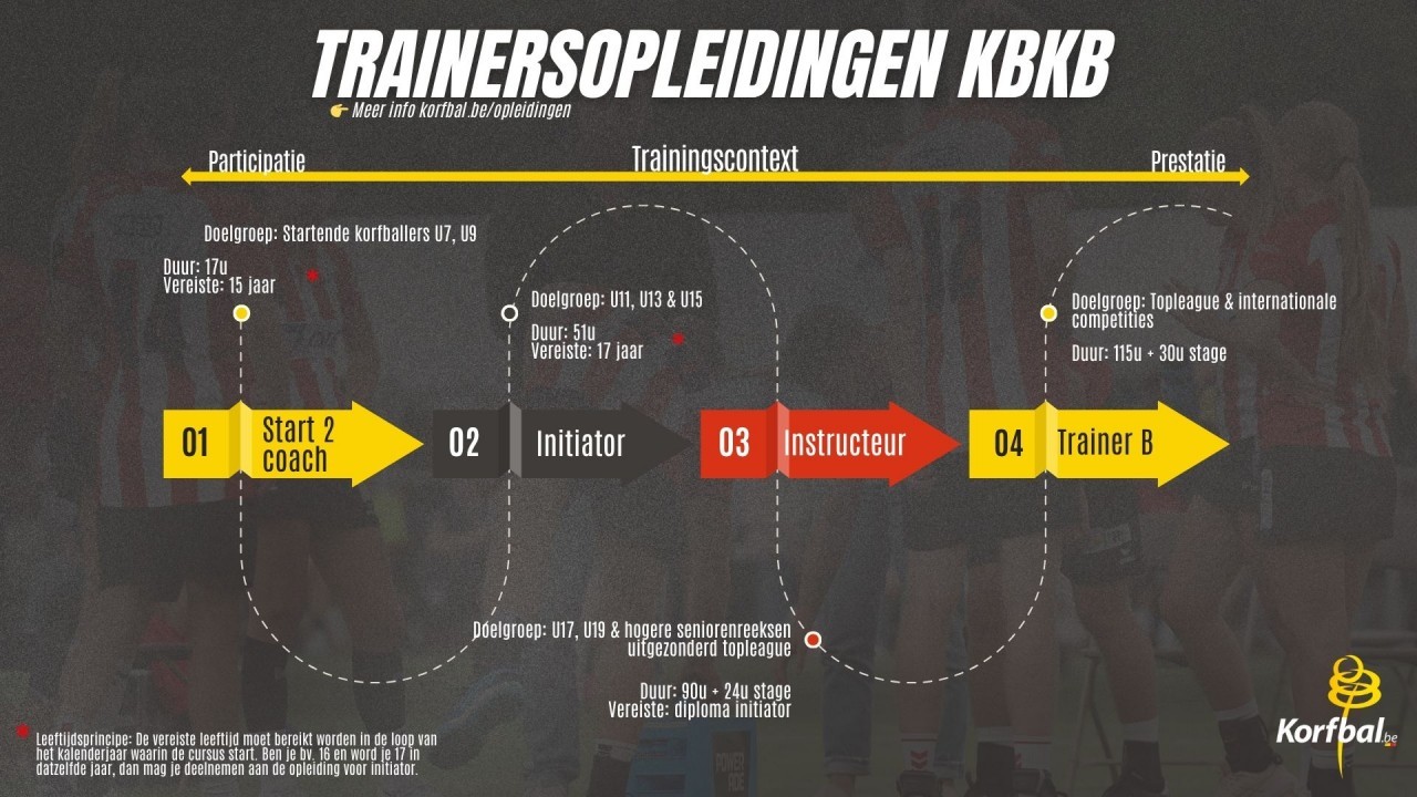 Momenteel kunnen binnen het korfbal onderstaande opleidingen gevolgd worden: