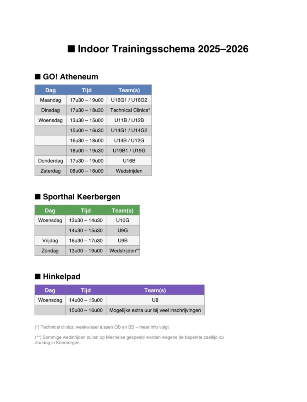 Hier vinden jullie alle belangrijke informatie over het komende indoorseizoen. We vragen jullie om dit document aandachtig te lezen zodat iedereen goed voorbereid aan de trainingen én wedstrijden kan beginnen.