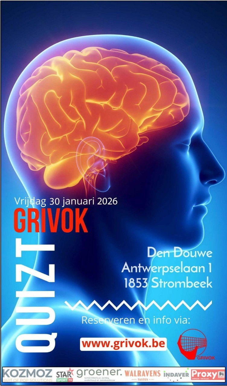 Volleybalclub Grivok Grimbergen organiseert op vrijdag 30 januari 2026 voor de 11e keer "Grivok QuizT".