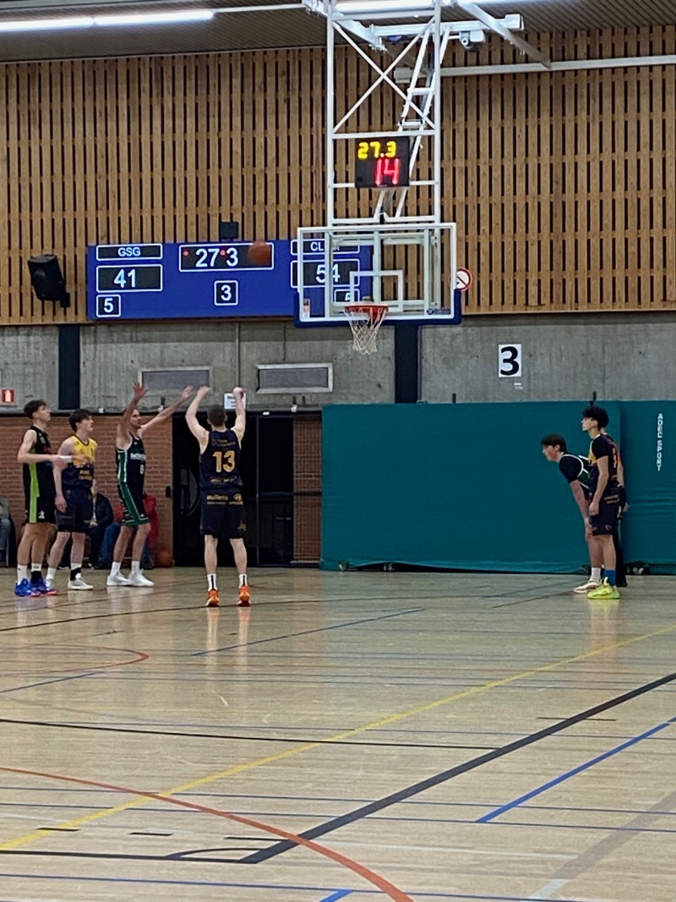 Ook Q3 begon met matig basketbal langs beide zijden. Clem kon wel de voorsprong vasthouden, 34-50 na 3 minuten. En 3 minuten later was er weinig veranderd op het scorebord, 35-50. Via 38-53 na 9 minuten eindigde Q3 met 41-57 op het bord.