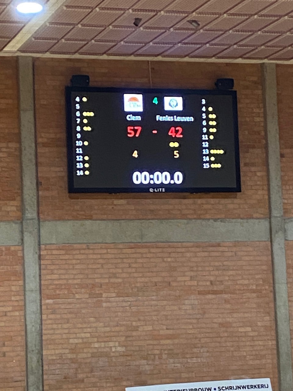 We waren één minuut ver in Q4 en er stond 50-39 op het bord. Na 4 minuten had Clem 15 punten bonus, 54-39. Nog 3 minuten te gaan, nog steeds de voorsprong voor Clem, 55-42. Clem controleerde nu en hield zo de punten thuis na een mindere eerste helft en veel betere tweede helft. Eindstand 57-42.
