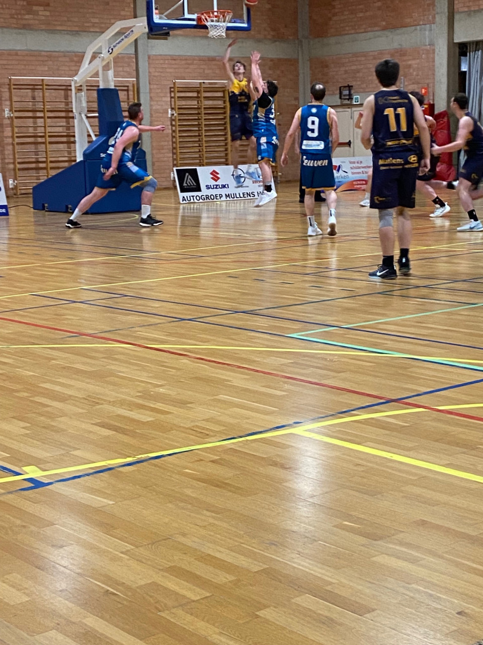 De wedstrijd was gespeeld. Enkele tussenstanden. Na 2 minuten 66-40, 2 minuten later 73-40. Nog 4 minuten wedstrijd, 78-44 op het bord. Via 82-46 eindigde de wedstrijd op 82-52.