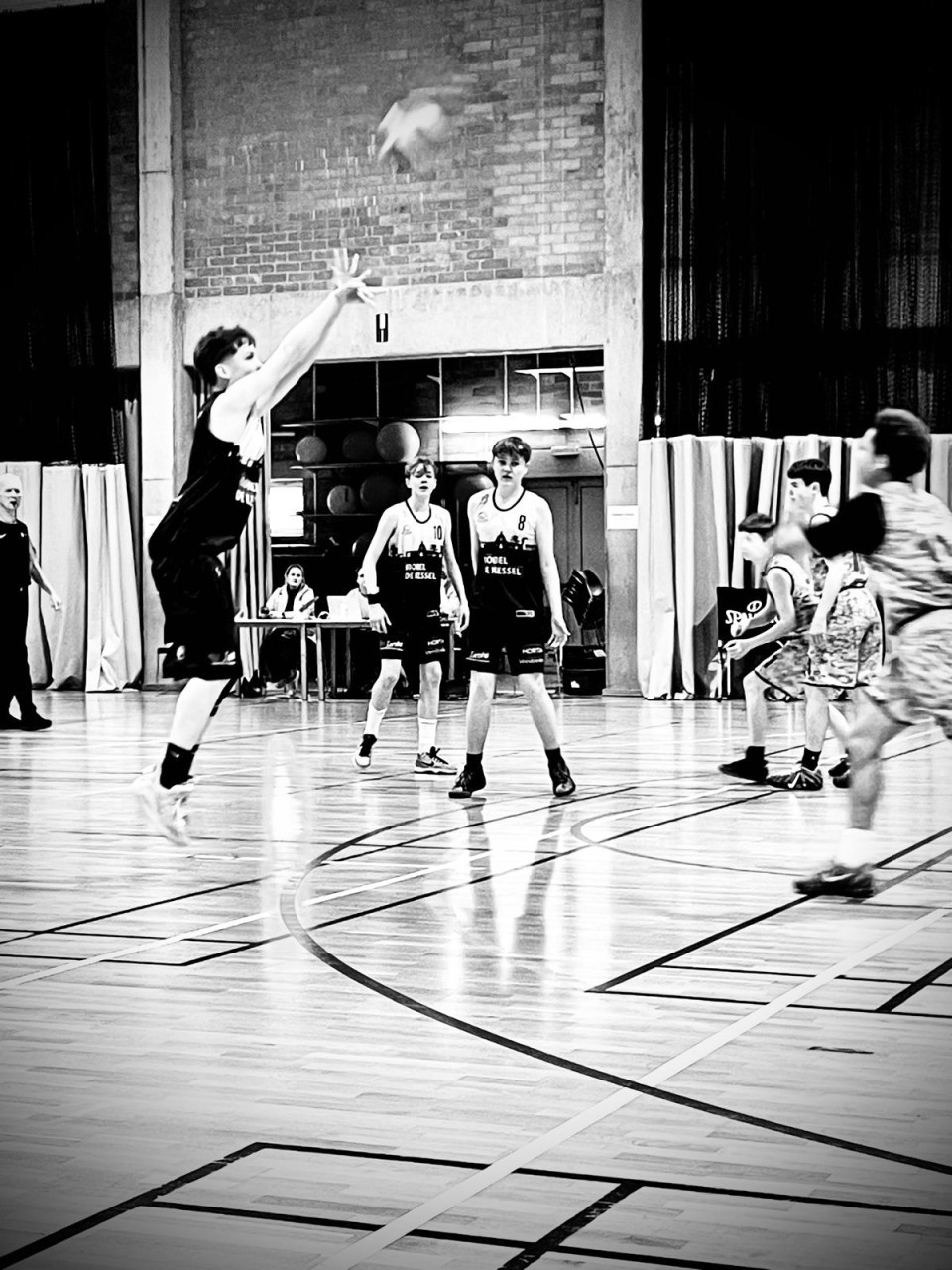 Clem begon meteen scherp en nam van bij de start het initiatief. Met veel energie en goed samenspel liep onze ploeg in het eerste kwart al uit naar 19-8. Ook in het tweede kwart bleef Clem het tempo bepalen, waardoor de voorsprong aan de rust verder was opgelopen tot 38-26.