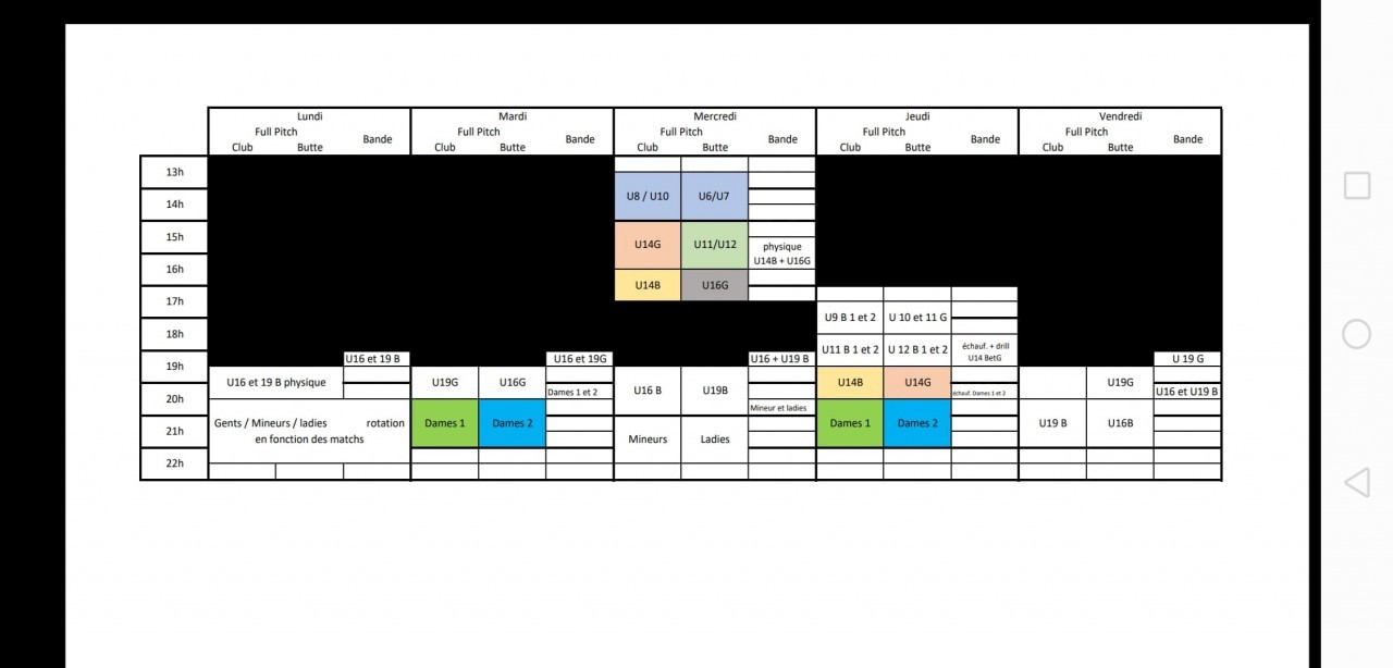 - De U11 à U19 (de 10 à 18 ans): rendez-vous à 15h00 jusque 16h30
