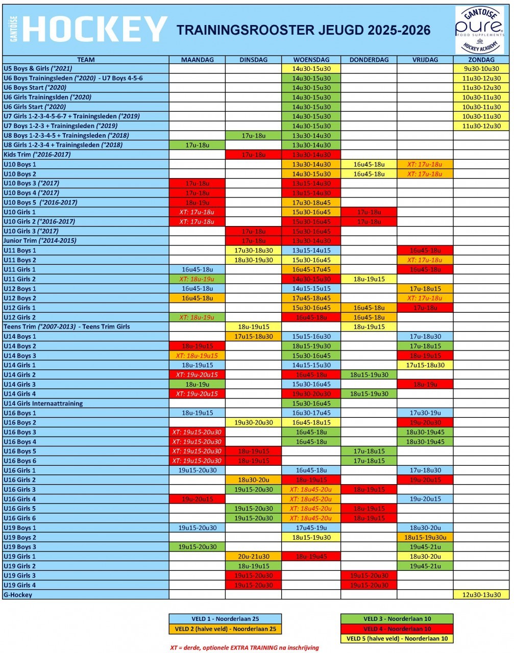 XT = derde, optionele EXTRA TRAINING voor Gantoiseleden na afzonderlijke inschrijving (55€) voor de tweede seizoenshelft -inschrijven via hockey@gantoise.be