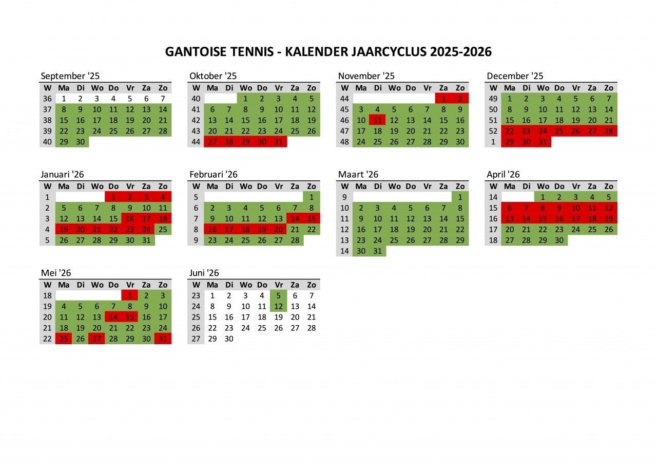 Alle lesvolgers van de jaarcyclus 2025-2026 dienen jaarlid te zijn van Gantoise tennistijdens het seizoen 2025-2026 (1/4/2025 t.e.m. 31/3/2026) en het seizoen 2026-2027 (1/4/2026 t.e.m. 31/3/2027).