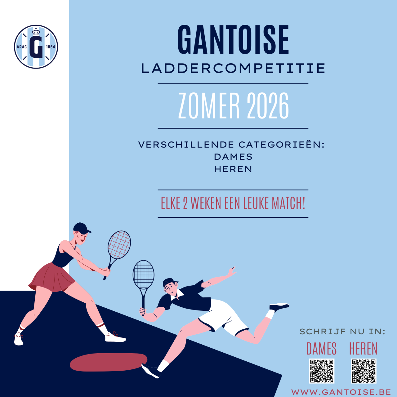 - Heren (vanaf 16 jaar) : https://sportconnexions.com/nl/tennisladder/gantoise-heren-tennis/11231/