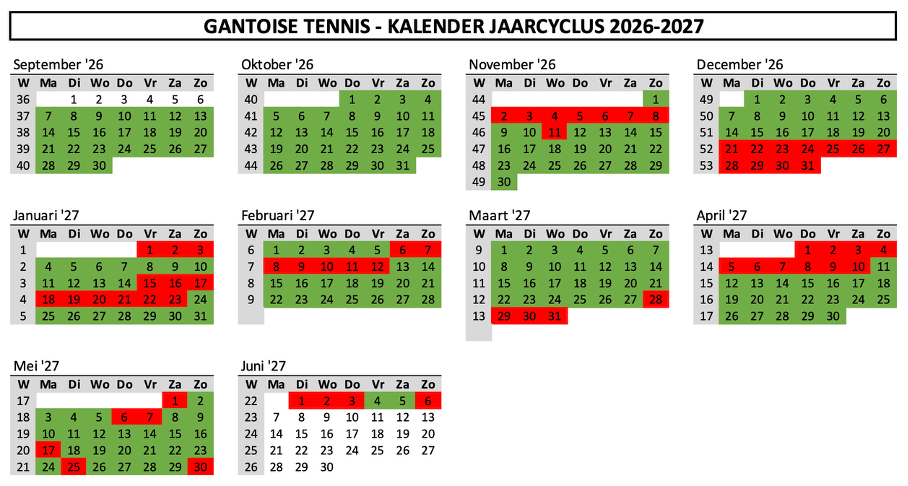 De jaarcyclus 2026-2027 bestaat uit 30 lesweken.